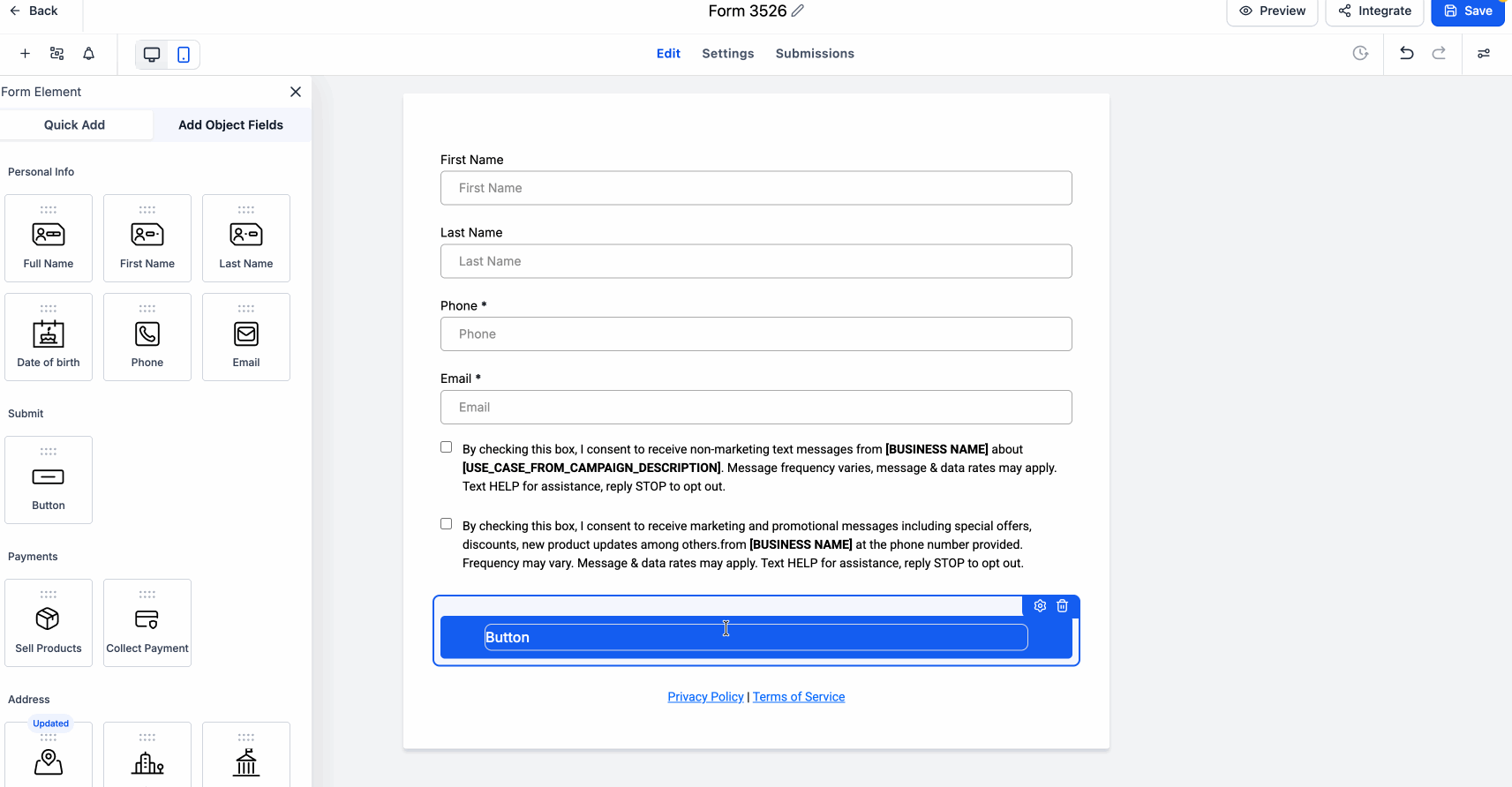 Ouvrez un formulaire ou un sondage dans le constructeur