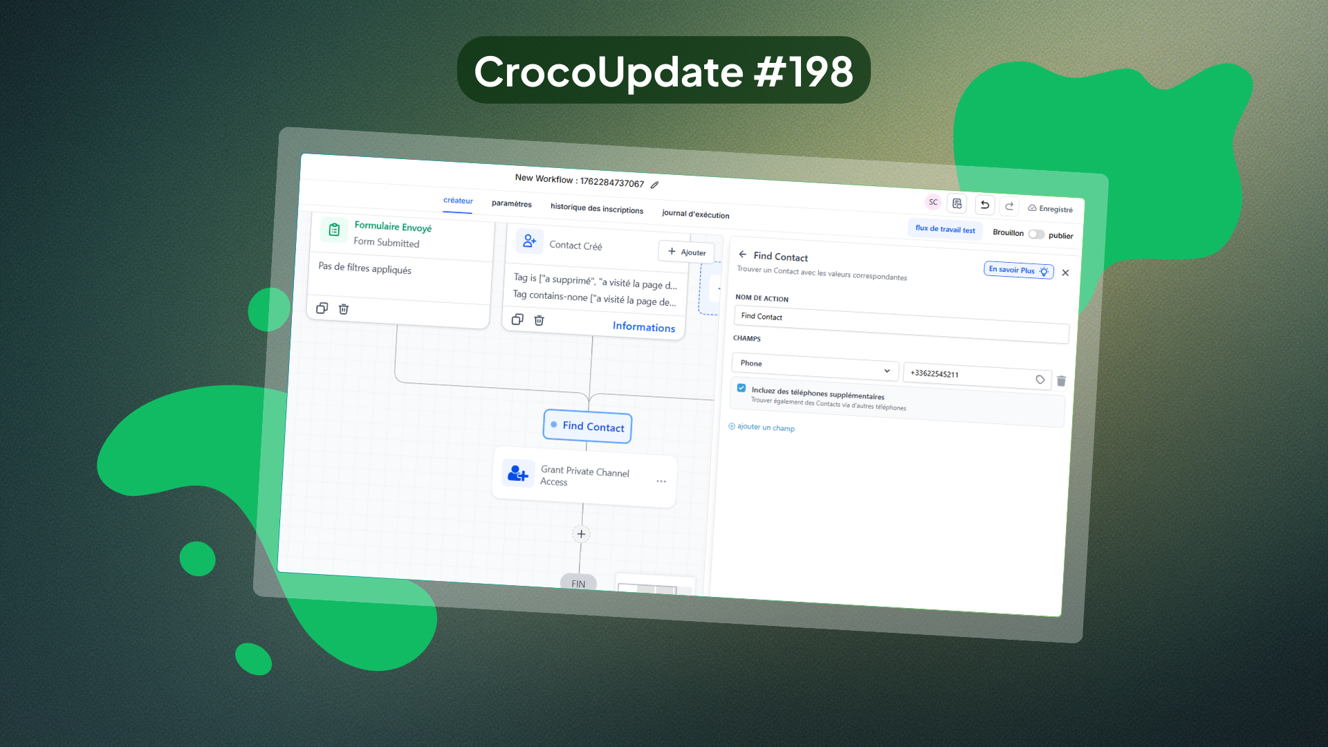 Avant cette mise à jour, l’action “Rechercher un contact” ne vérifiait que l’email principal et le numéro principal.