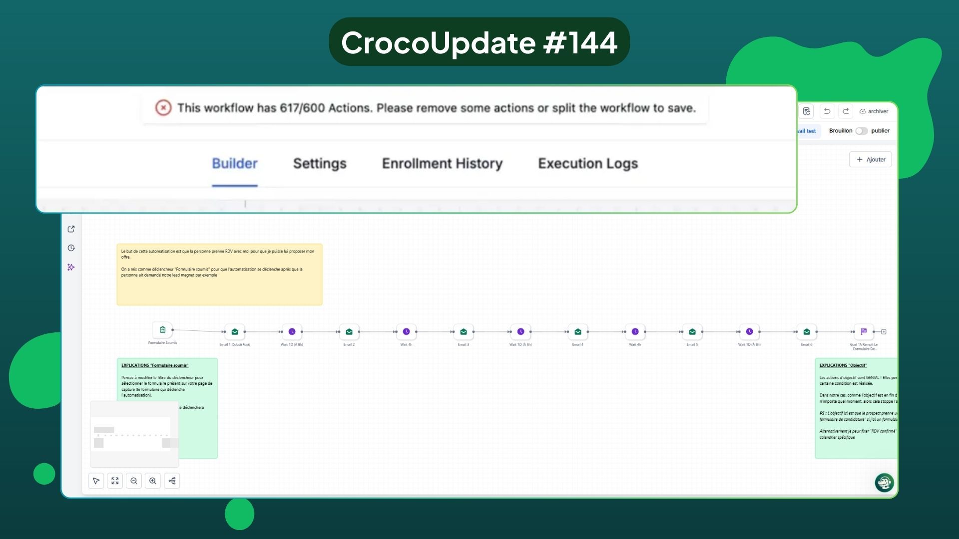 Vous pouvez désormais créer des workflows allant jusqu’à 600 actions, que vous utilisiez le Builder standard ou avancé.