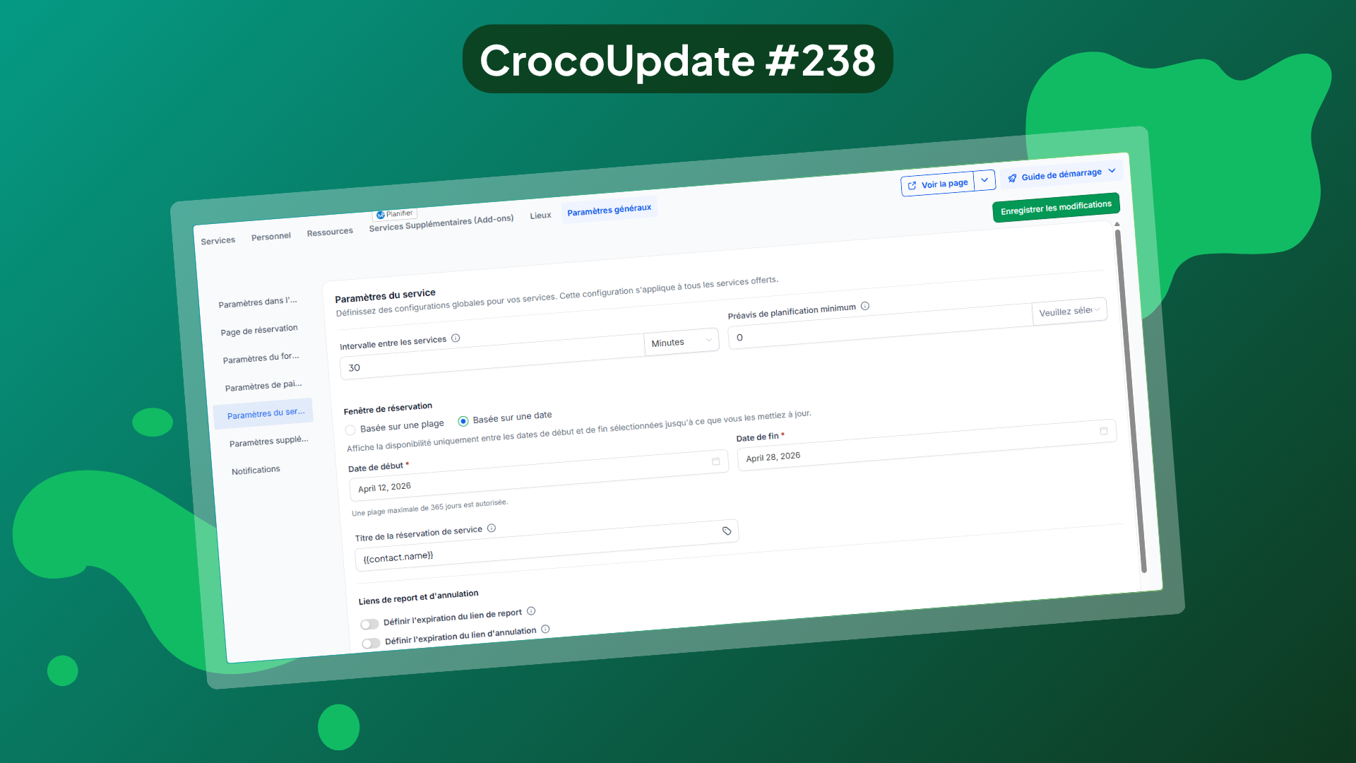 Vous pouvez désormais contrôler précisément les périodes de réservation de vos services.