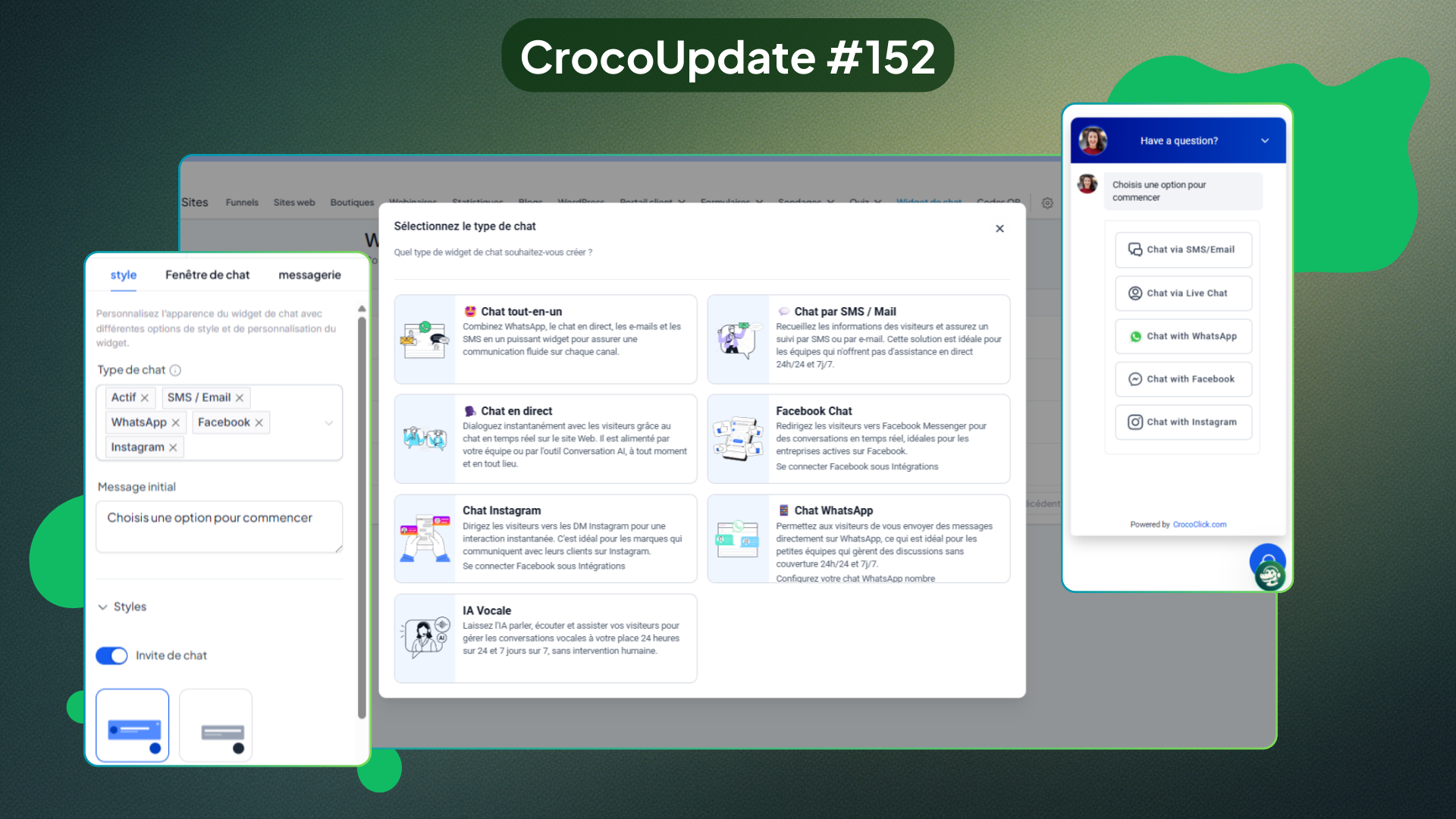 Le widget de chat tout-en-un de CrocoClick prend désormais en charge Facebook, Instagram et la Voice AI, en plus des canaux déjà disponibles.