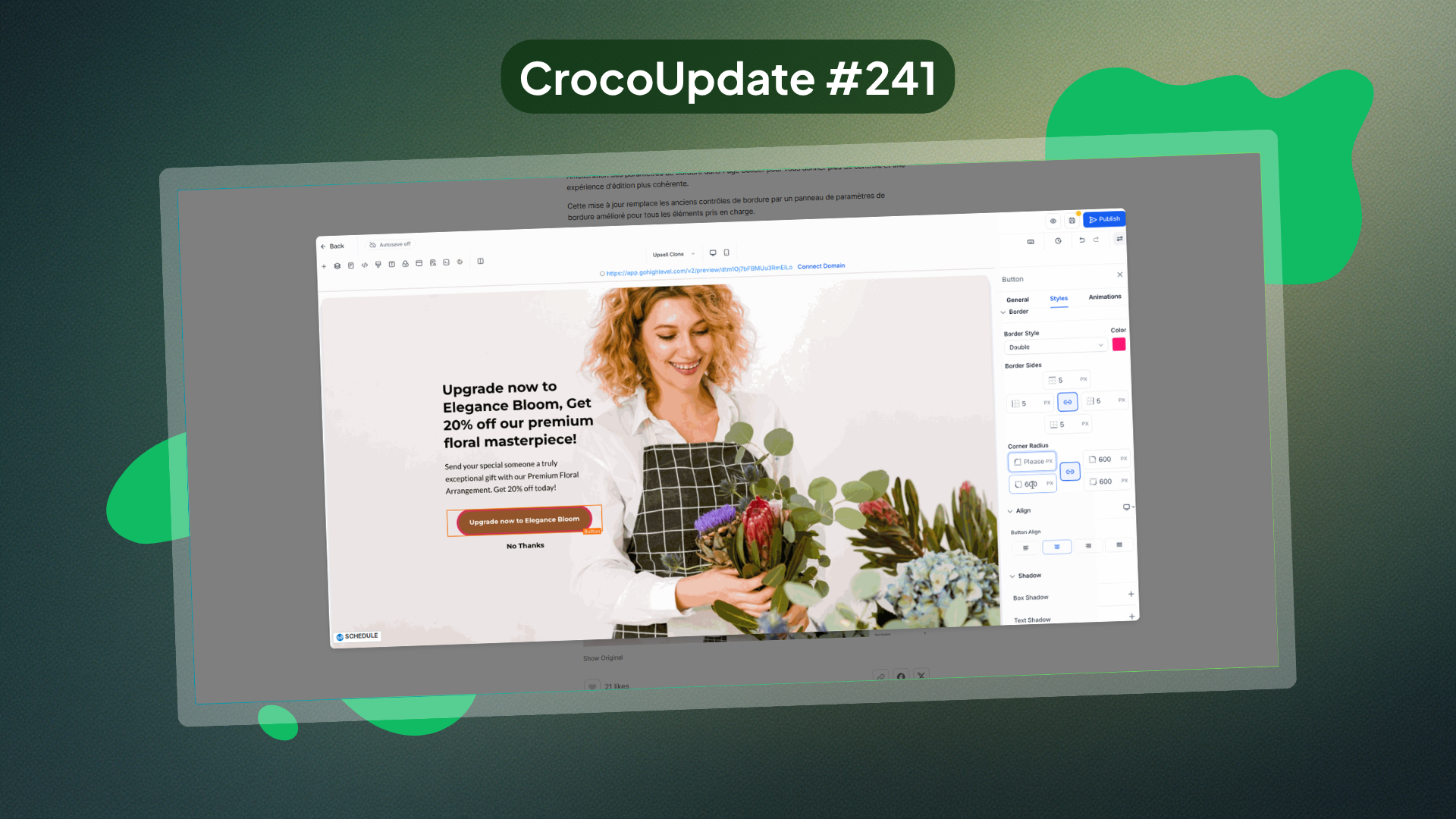 Le design d'une page se joue souvent dans les finitions. Bordures dissymétriques, coins sélectifs, effets de profondeur — tout ça était possible avant, mais ça passait par du code ou des contournements. Maintenant, c'est directement dans l'éditeur, accessible à tous.