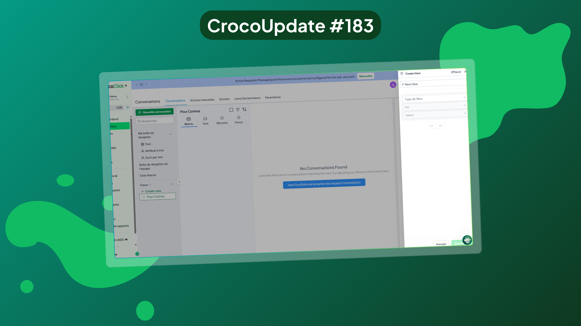 CrocoClick introduit les Vues de conversation, pour vous permettre d’enregistrer vos filtres les plus utilisés et de passer d’un focus à l’autre en un clic, sans tout reconfigurer à chaque fois 🚀