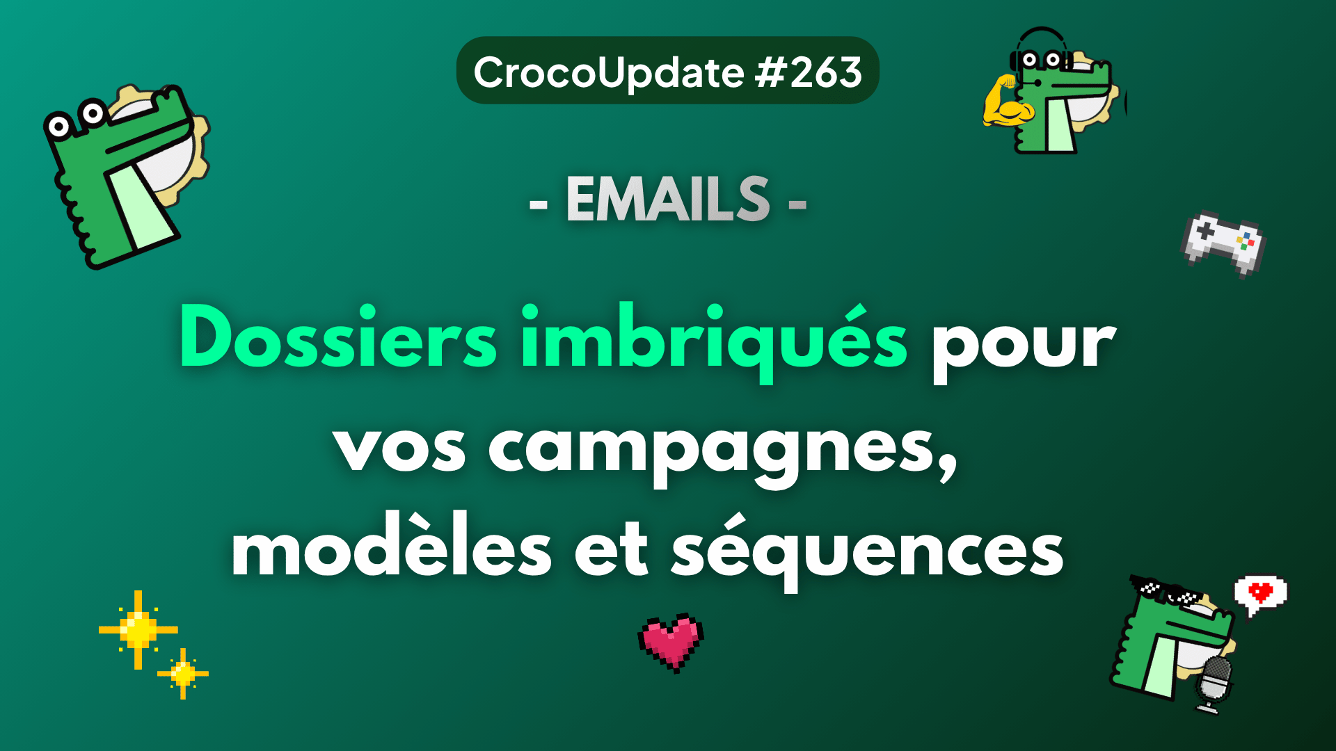 Jusqu'ici, le constructeur email acceptait une seule couche de dossiers. Suffisant pour une petite structure, vite saturé quand on gérait vingt clients avec chacun ses propres campagnes, modèles et séquences. Les nouveaux dossiers imbriqués ouvrent la voie à une arborescence qui ressemble à votre organisation réelle : un dossier par client, à l'intérieur des dossiers par année ou par campagne, et à l'intérieur des sous-catégories plus fines.