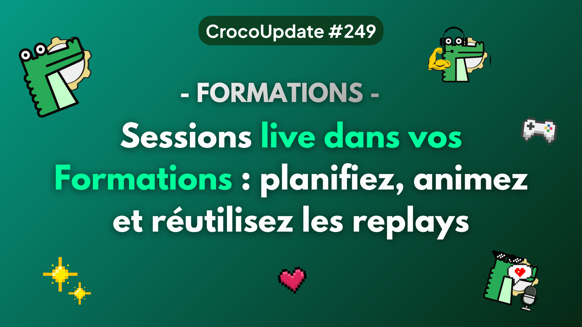 Les formations gagnent en interactivité et en flexibilité. Les sessions live arrivent dans CrocoClick au sein de vos formations : planification, animation en direct, enregistrement et conversion en leçons, le tout sans quitter la plateforme.