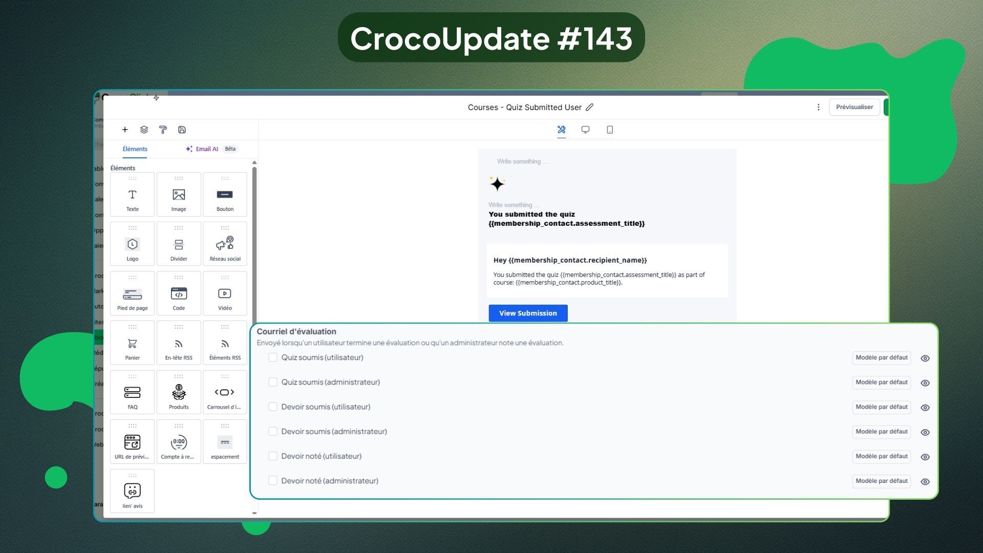 CrocoClick ajoute une série de nouvelles notifications email dédiées au suivi des évaluations, des devoirs et des commentaires dans vos formations.