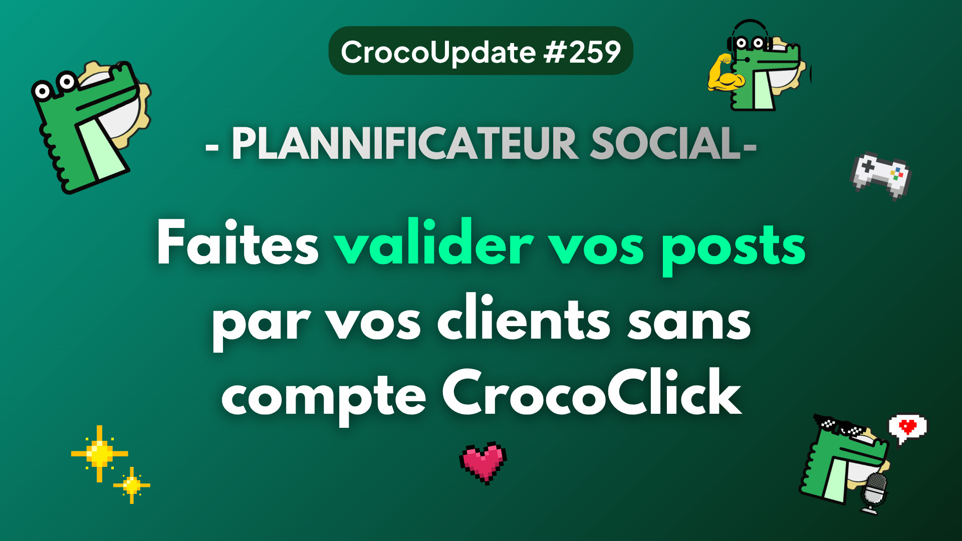 Plus besoin d'inviter vos clients dans CrocoClick juste pour qu'ils valident leurs posts. Un lien sécurisé suffit pour qu'ils approuvent, refusent ou demandent un report, le tout sans créer de compte.