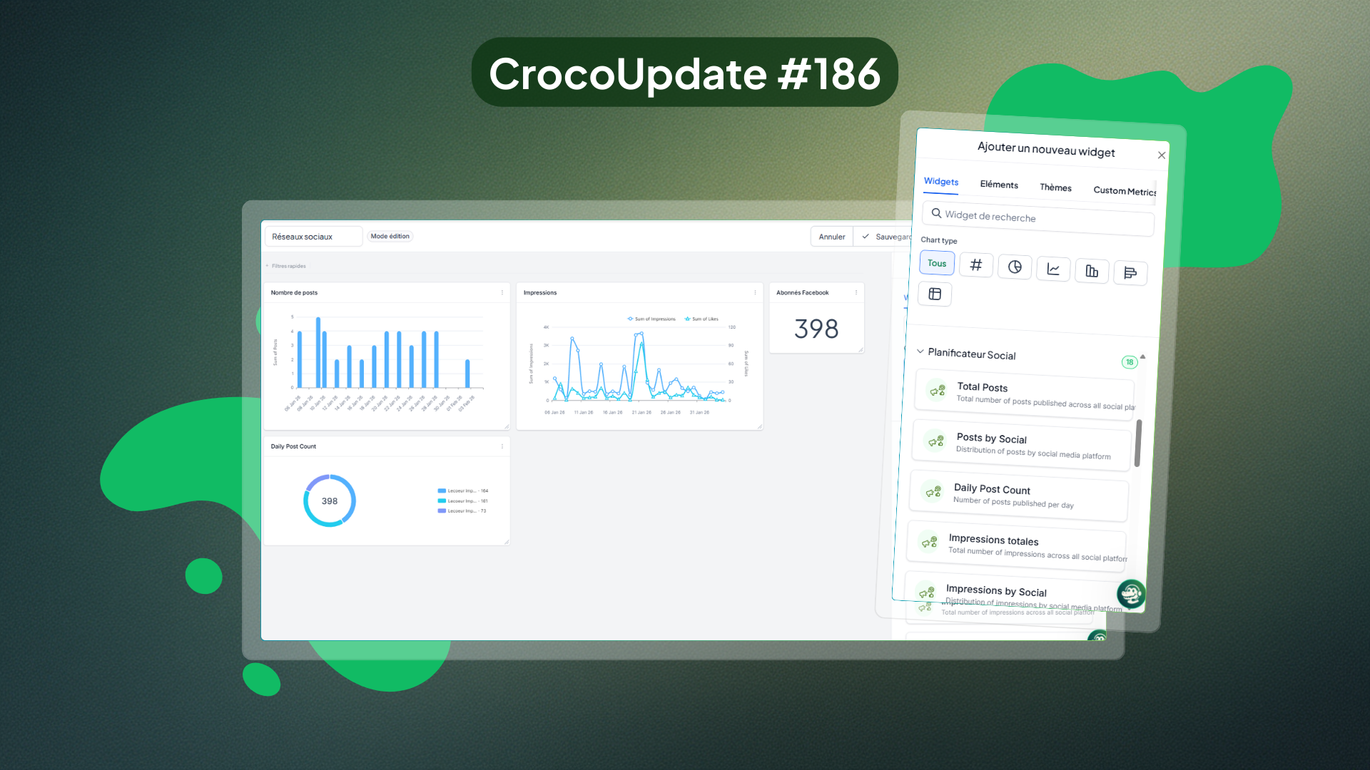 Avec ces nouveaux widgets, CrocoClick vous offre une vision centralisĂ©e et scalable de vos performances sociales, idĂ©ale pour le pilotage quotidien comme pour le reporting client đȘ