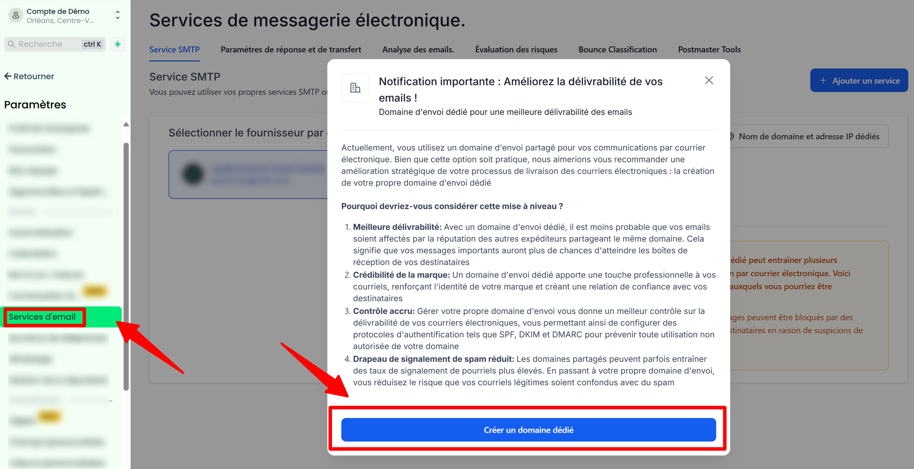 1. Accéder aux paramètres de domaine d'envoi dédié